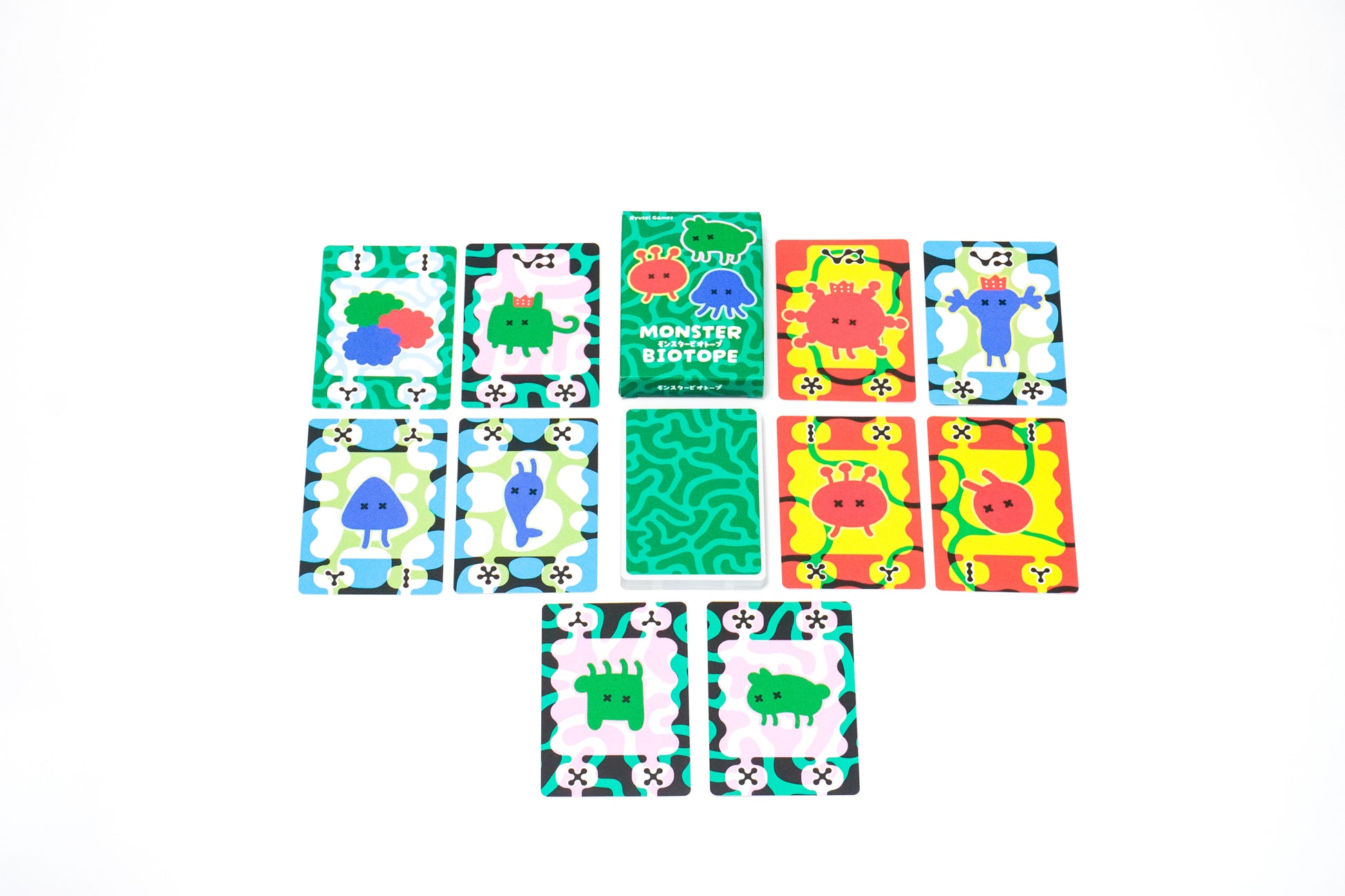 In Monster Biotope, players will work together to build a pyramid-shaped food chain, aiming to bring about the birth of a king monster at the top! Below is a brief overview of the game. More detailed rules can be found in the rulebook.